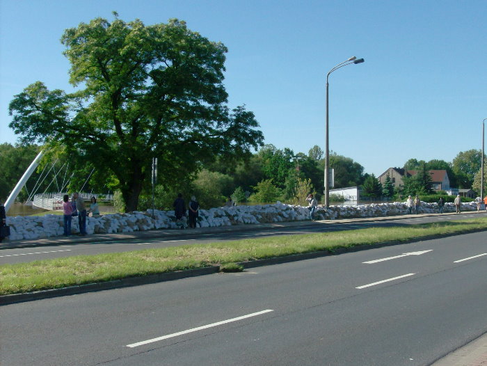 | Schönstes Wetter und die Mulde steigt weiter. Der offizielle Pegel liegt bei 6,25m und damit beim Höchststand von 2002. Für morgen Vormittag ist der Scheitelpunkt des Hochwassers angekündigt. | |||||||||||||||||