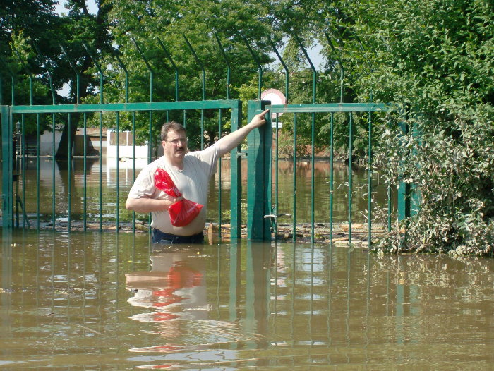 | Es ist soweit - das Wasser ist nun auch auf den Ständen versickert und die Aufräumarbeiten haben begonnen. Das Tor zum Vereinsgelände steht zwar noch unter Wasser, aber durch den Hochwasserzugang kommt man trockenen Fußes auf das Gelände. | |||||||||||||||||