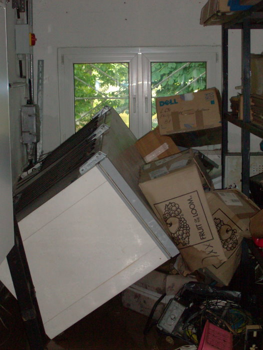 ![]() Auch aus anderen Räumen kommen Elektro- und Elektronikgeräte, welche die "Wasserkühlung" nicht überstanden haben und jetzt auf ihre Entsorgung warten. |