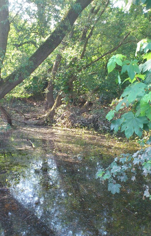 | Heute ein fast romantisches Bild zum Anfang. So friedlich sieht die Mulde aus - wenn man es nicht besser wüßte und einen wenige Meter weiter die Realität einholen würde. | |||||||||||||||||
